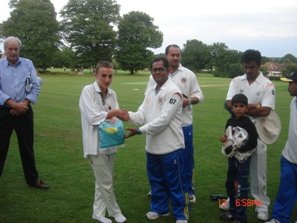 The ECB has given us two tickets for the opening ceremony of the ICC Twenty 20 competition and the England vs. Netherlands match at Lords on the 5th June. These were to be given to two volunteer coaches so we had a draw at the club after the junior coaching on Monday and it was won by Craig Jones and Matt Dilger. Richard Hall, Surrey Community Coach, was doing a bowling master class so we asked him to present the tickets to the two lucky winners.
