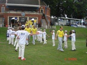 We had a busy couple of days at the club. On the 4th August we hosted the under 11 match between Surrey and Warwickshire in which Surrey snatched an improbable victory when the cause seemed lost. There were upwards of about a hundred players, coaches, officials and supporters and after a bad start weather-wise we were blessed with a dry spell which enabled the match to take place. On the following day our youngsters were Guard of Honour at the Surrey versus Derbyshire NatWest Pro 40 match at the Whitgift School at Croydon. A coach left Newdigate at 11.30 am and the party arrived in good time for the match. The boys and some parents saw a high scoring match in which Derbyshire managed to overhaul Surrey’s total of 282. A tired but happy group arrived back at Newdigate at 7.15 pm.