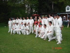 Saturday the 6th June and where’s our cricket team ? All at James Bettesworth’s wedding. Here is James with his bride, Stephanie and a load of cricketers all looking very smart. Hope James keeps his eyes open next time he goes into bat!