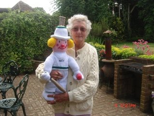 Have you met our new member! Hand knitted and crafted by Sue Callcut she brought him all the way from the Isle of Wight and presented him to the club during the match against Holmbury St. Mary on the 4th July.